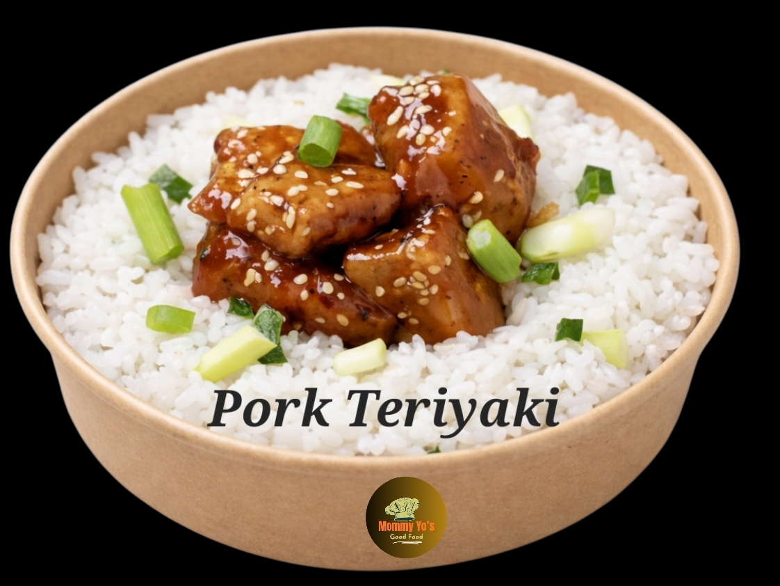 Pork teriyaki with rice is a savory and slightly sweet dish featuring tender slices of pork glazed in a rich teriyaki sauce, served over warm steamed rice. The sauce coats the pork with a glossy, flavorful finish, while the rice absorbs the sweet-savory notes, creating a satisfying and well-balanced meal perfect for any time of day.